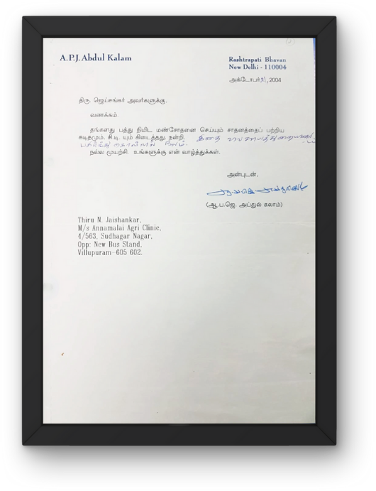 Appreciation letter from Dr. APJ. Abdul Kalam